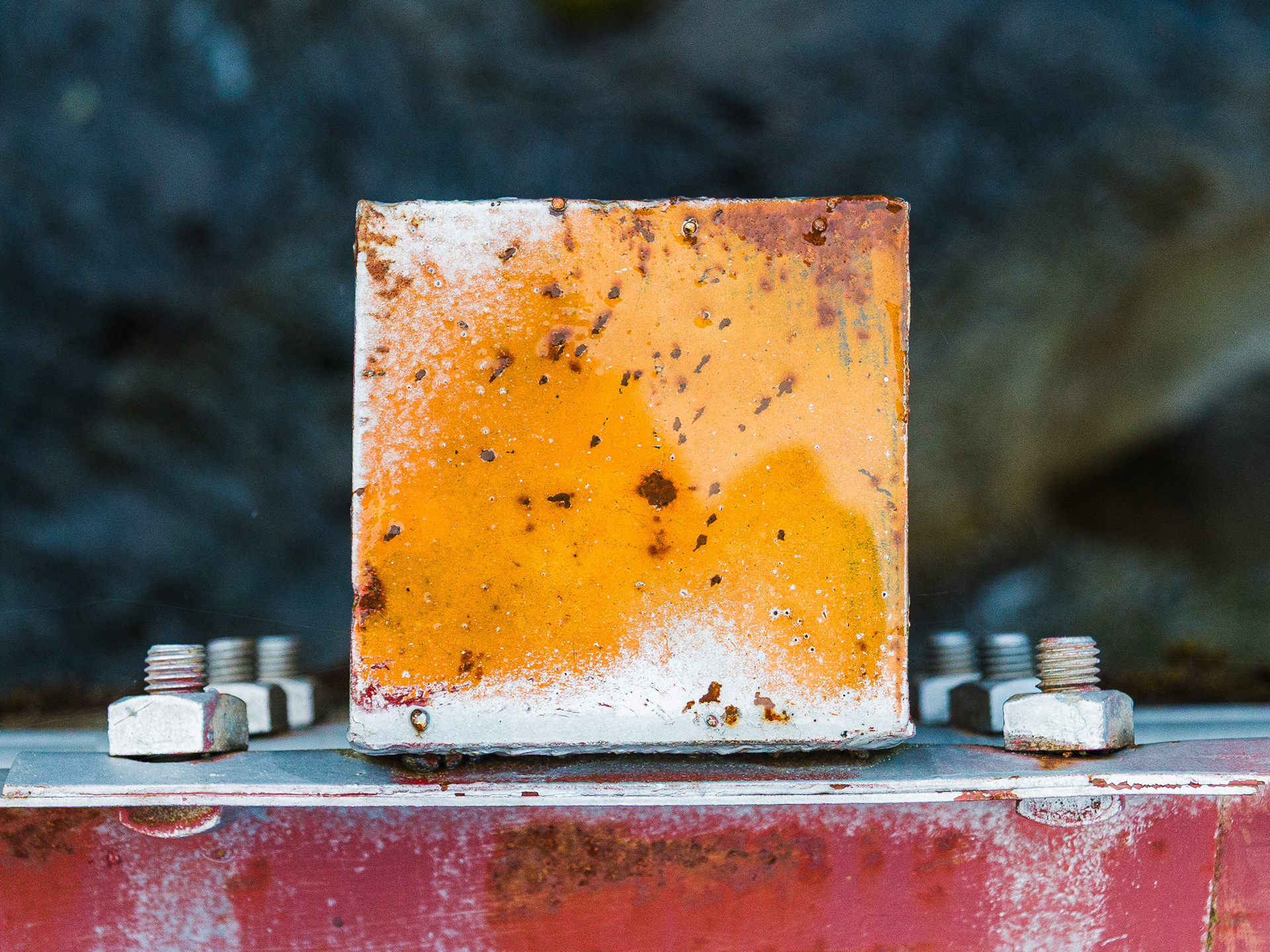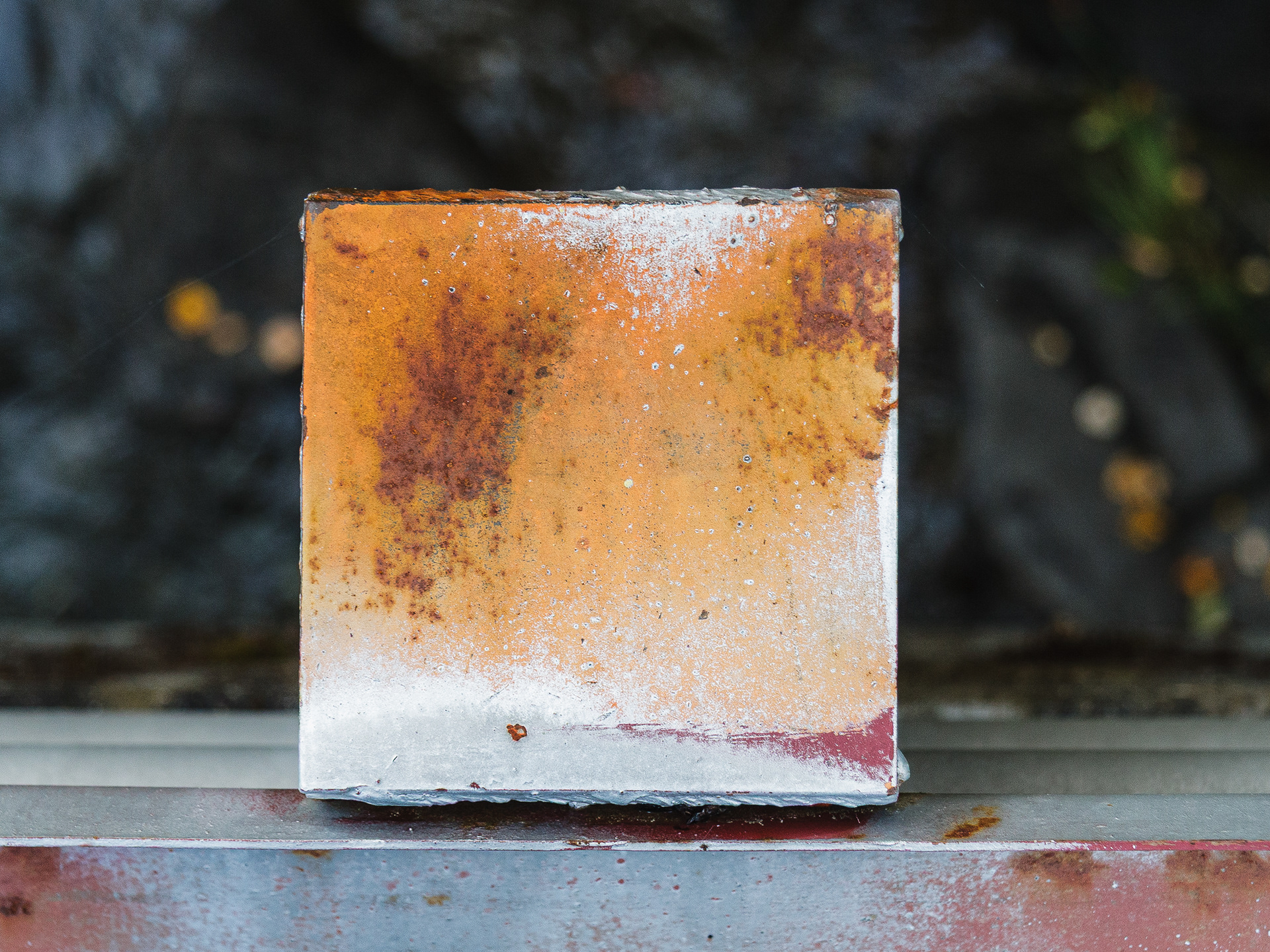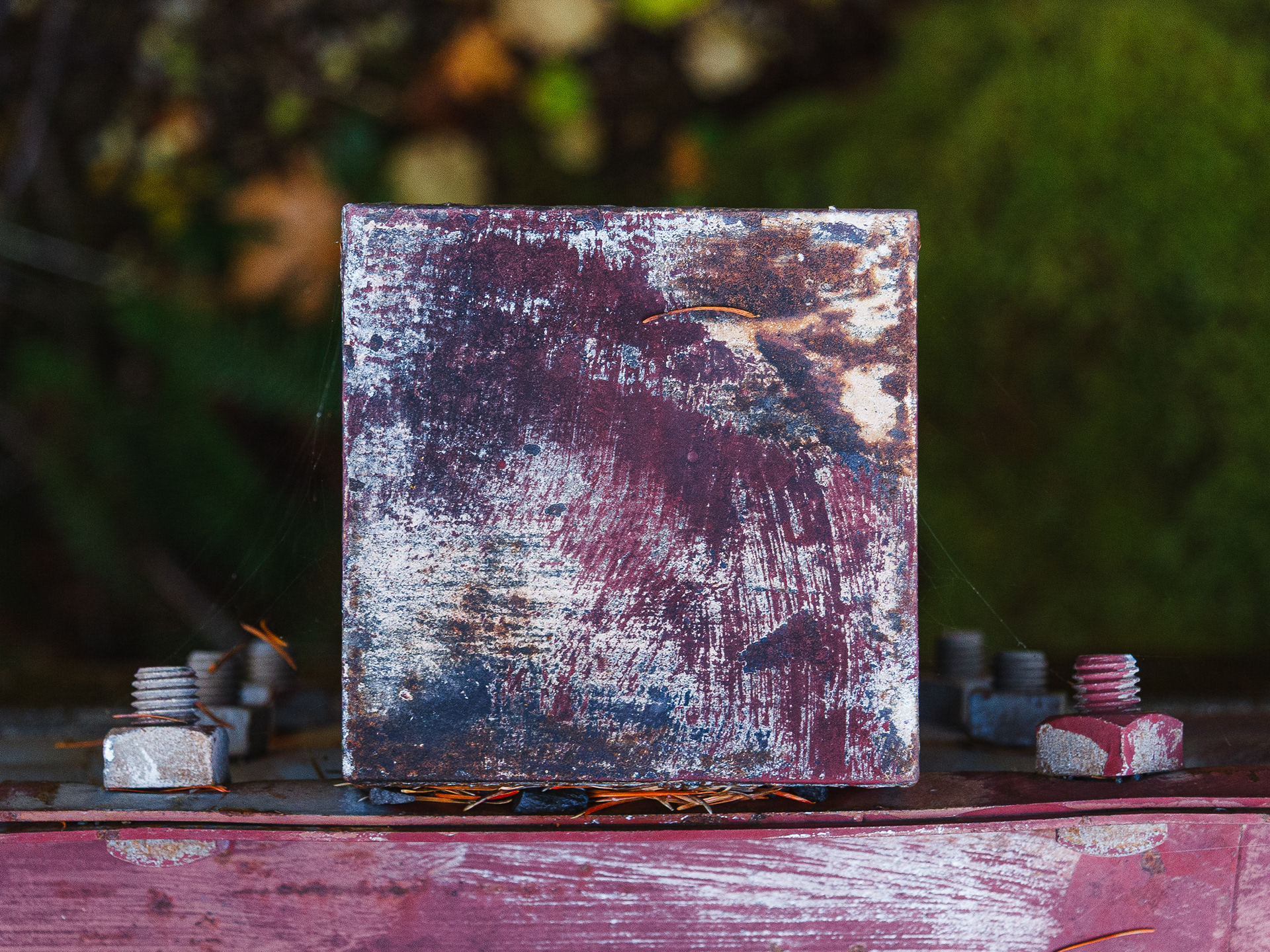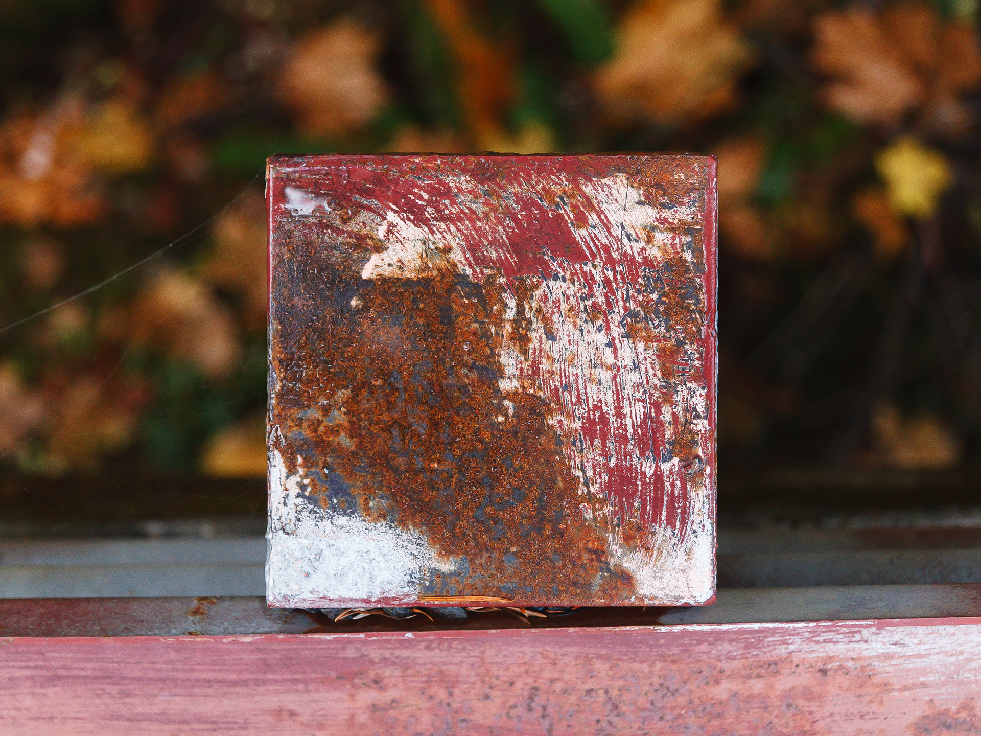 We stopped by a bridge driving up a river in Oregon to look at the scenery. I noticed that the post tops of the post supporting the guard rails had weathered and the layers of paint formed some wonderful abstract images. They looked like Abstract Expressionist paintings. Couldn't resist.