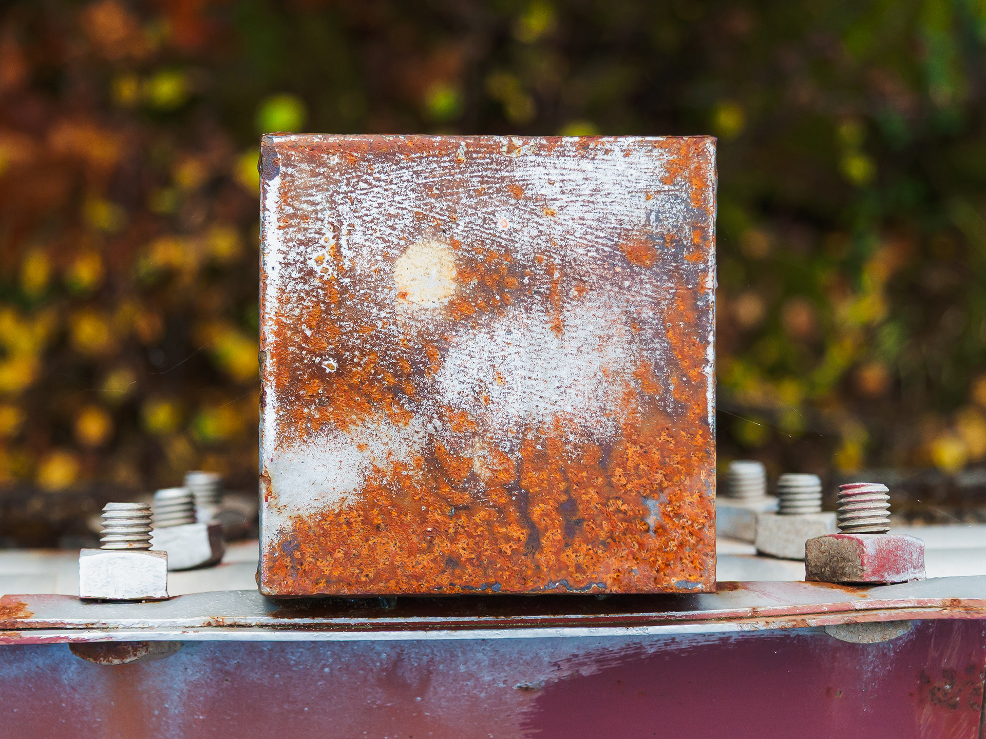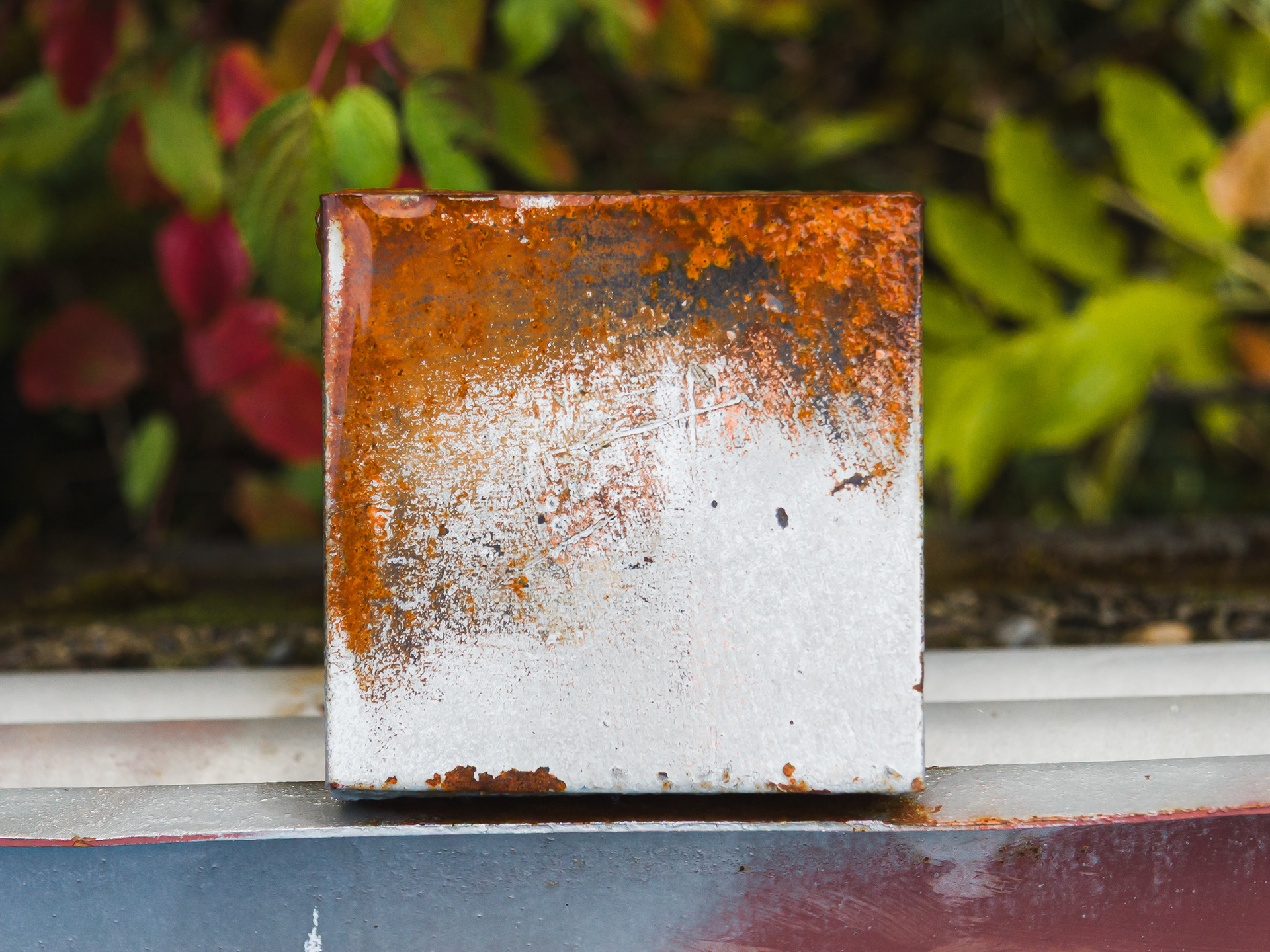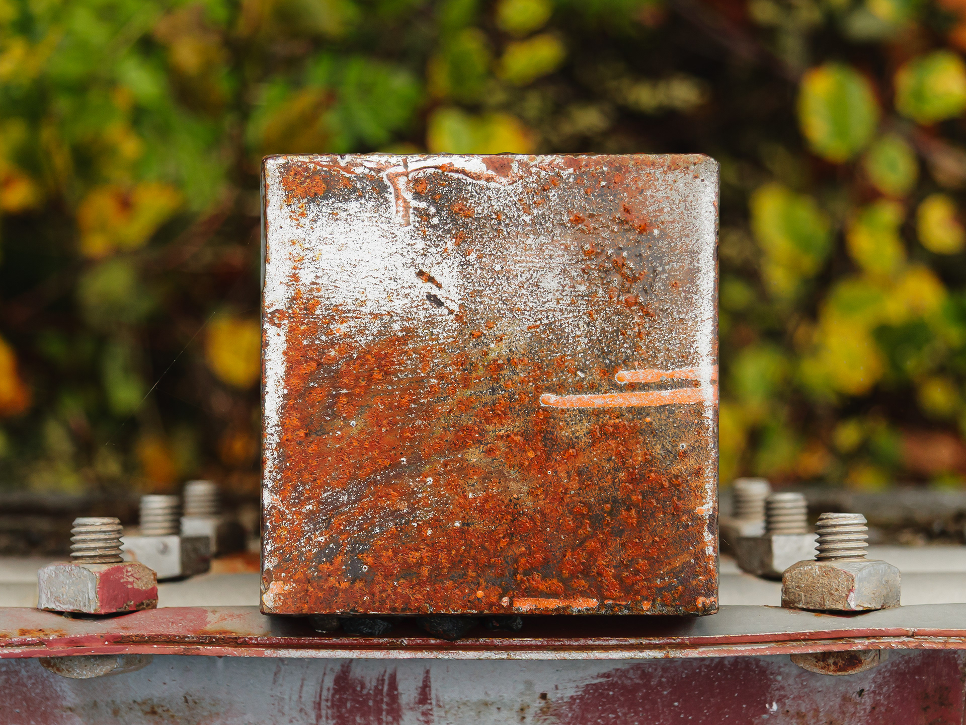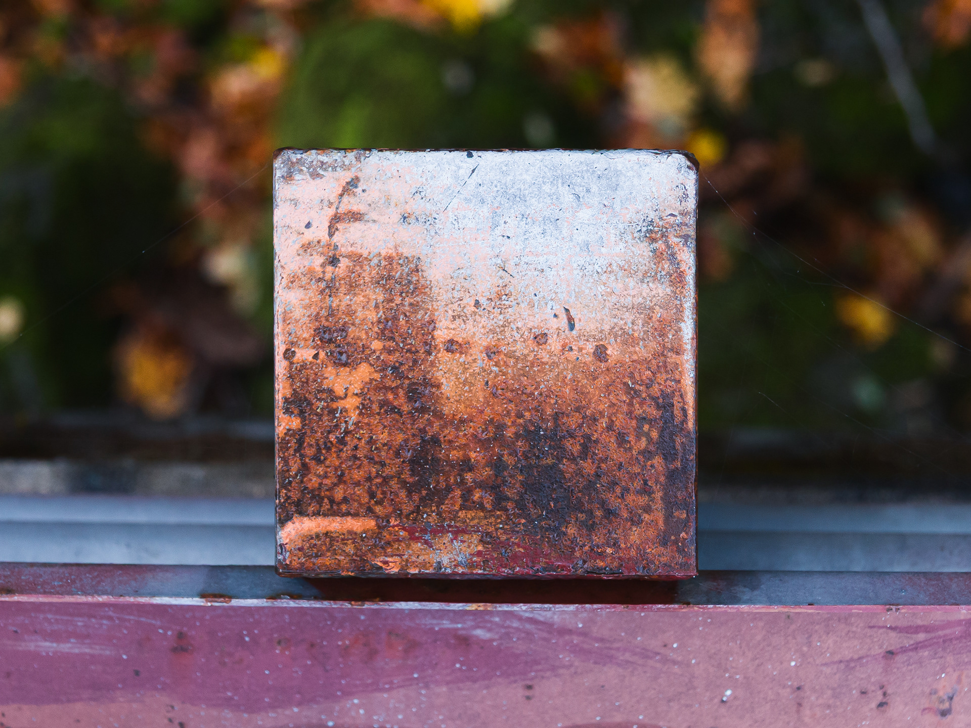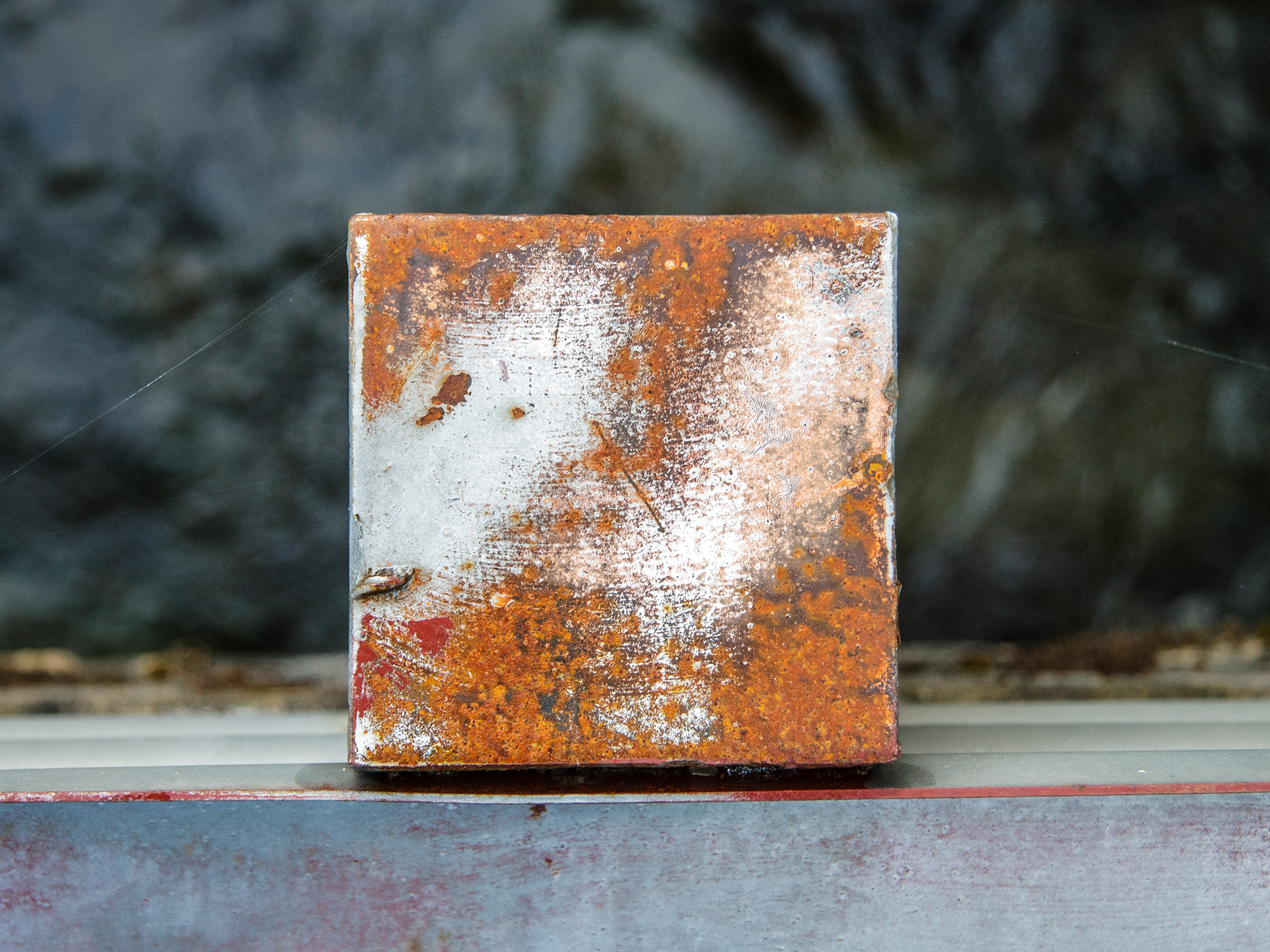 We stopped by a bridge driving up a river in Oregon to look at the scenery. I noticed that the post tops of the post supporting the guard rails had weathered and the layers of paint formed some wonderful abstract images. They looked like Abstract Expressionist paintings. Couldn't resist.